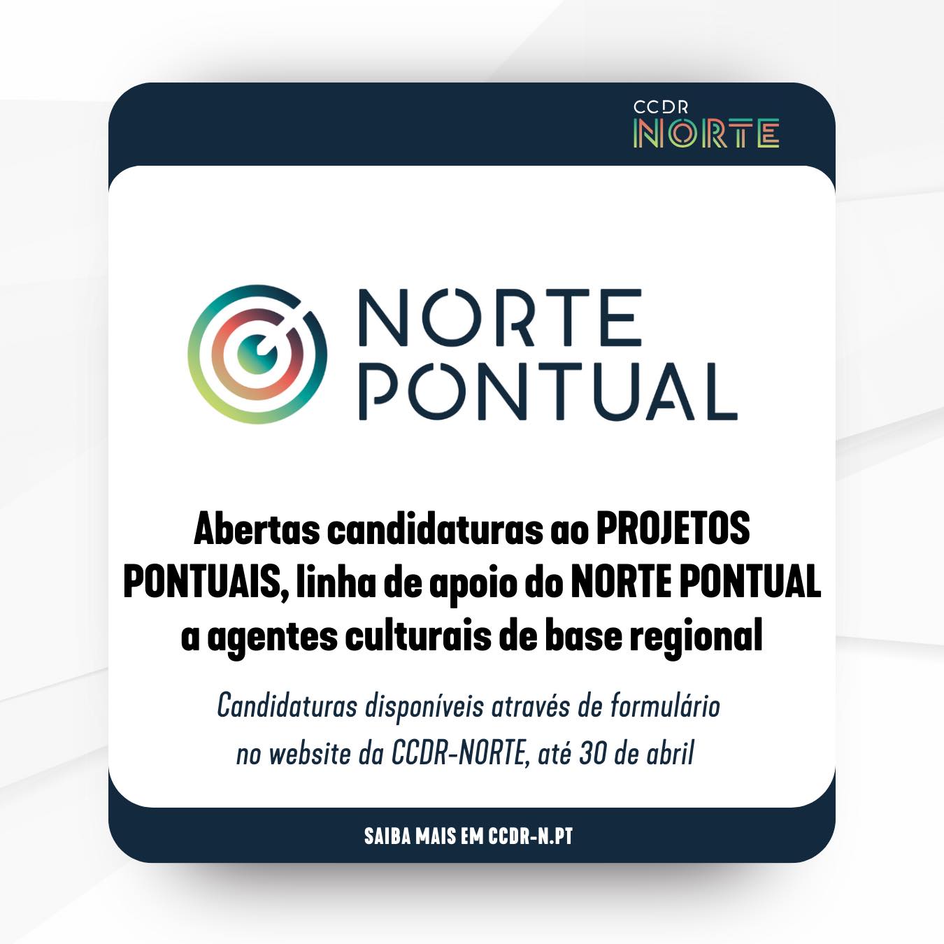 A linha de apoio Projetos Pontuais, uma de três vertentes de financiamento a agentes culturais da Região Norte disponibilizadas pelo NORTE PONTUAL, é a primeira a abrir as suas candidaturas, que estão disponíveis até 30 de abril, no website da CCDR-NORTE