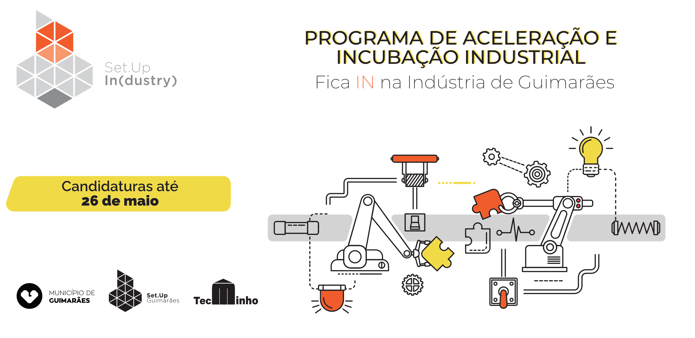 A Set.Up Guimarães e a TecMinho desenvolveram o Set.Up IN(dustry), um programa intensivo de aceleração que transformará novas ideias em negócios de sucesso, por meio de um conjunto de workshops e coaching individualizado. A iniciativa irá facilitar a ligação entre novas startups e as empresas indústrias do Município de Guimarães, estimulando o crescimento de uma nova cultura industrial na região, baseada em soluções inovadoras.